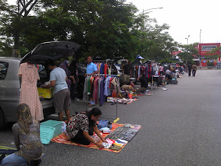 masa ni saya dah pindah lagi ke depan Gedung Harian, di sini nampaknya lebih ramai pengunjung, berjiran pula dengan gerai pelbagai beg kecil dan kasut/selipar menarik